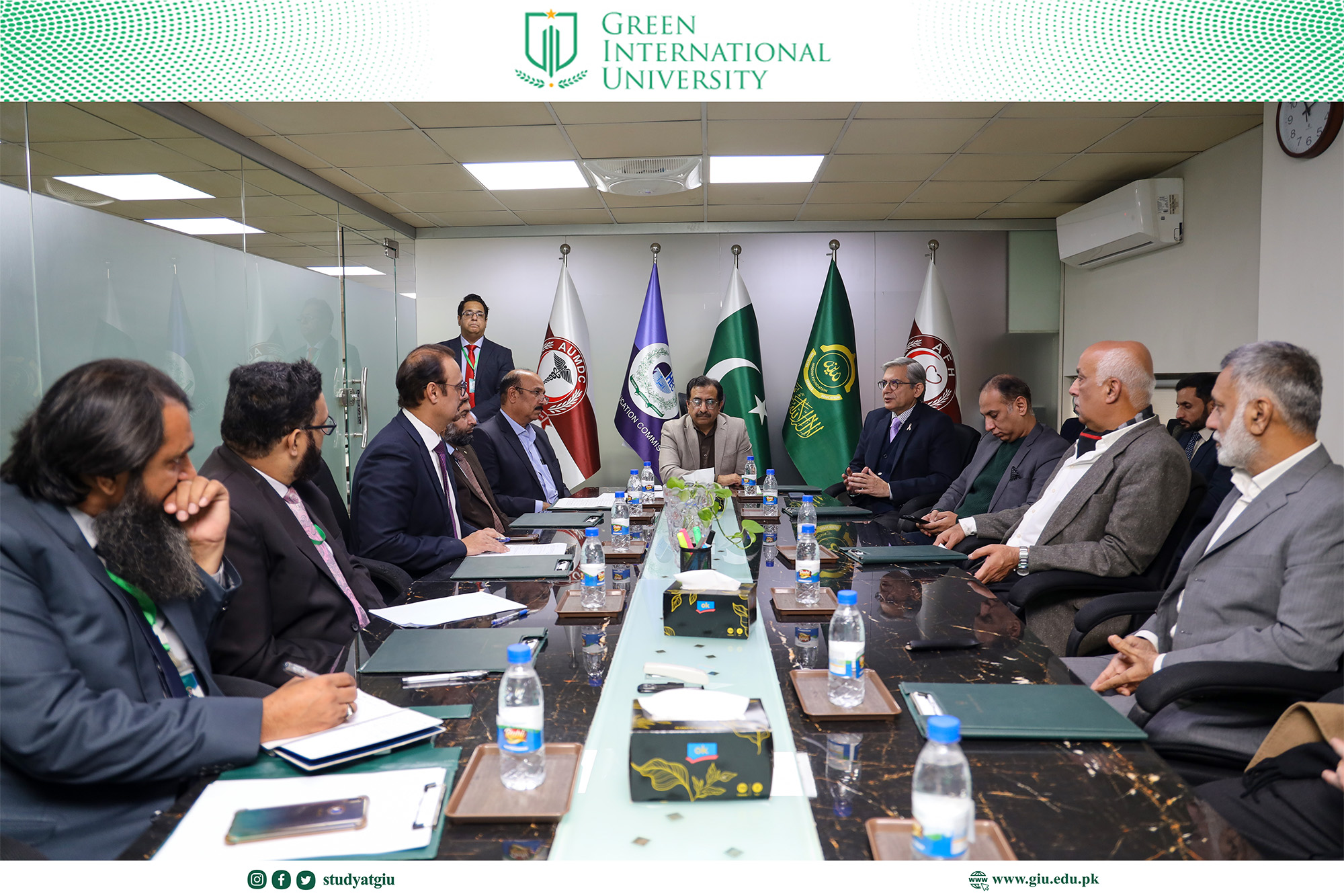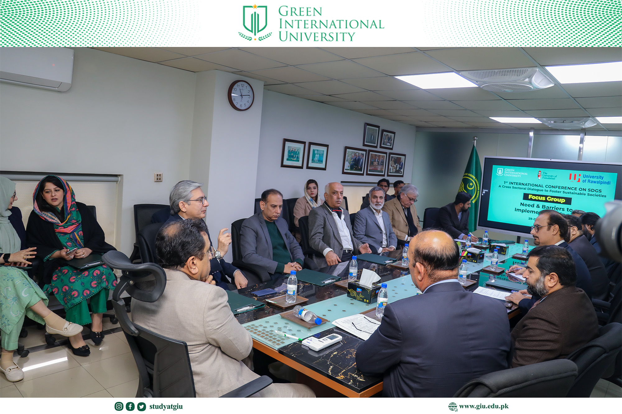 Green International University (GIU) proudly hosted the 1st International Conference on Sustainable Development Goals (SDGs), titled “A Cross-Sectoral Dialogue to Foster Sustainable Societies,” at its campus. The conference reaffirmed GIU’s strong commitment to advancing the United Nations 2030 Agenda for Sustainable Development through inclusive, collaborative, and evidence-based engagement. The event brought together a diverse group of stakeholders, including representatives from government departments, regulatory authorities, non-governmental organizations (NGOs), industry leaders, academia, and civil society. Participants engaged in in-depth discussions focused on key dimensions of sustainable development, including: