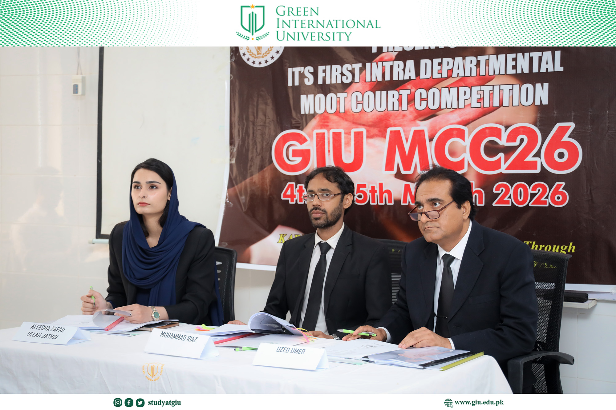 The Law & Moot Society, in collaboration with the Faculty of Law at Green International University (GIU), proudly commenced the 1st Intra Departmental Moot Court Competition 2026, marking a significant academic milestone for the Department of Law.