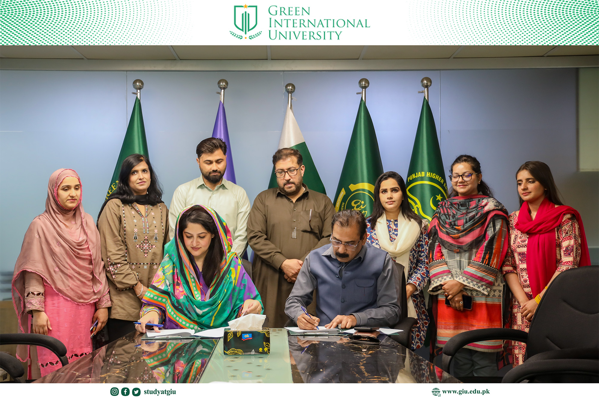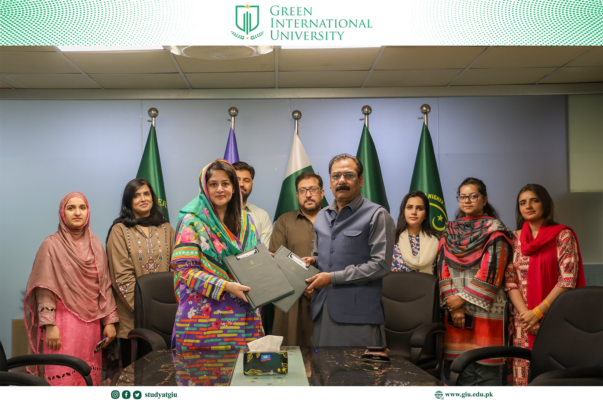The Green Business School (GBS) at Green International University (GIU), under the leadership of Dr. Hina Jaffery, has signed a landmark Memorandum of Understanding (MOU) with Pakistan Broadcasting Corporation (Radio Pakistan), Lahore. This strategic partnership marks a significant step toward strengthening collaboration between academia and industry to enhance higher education and professional capacity building.