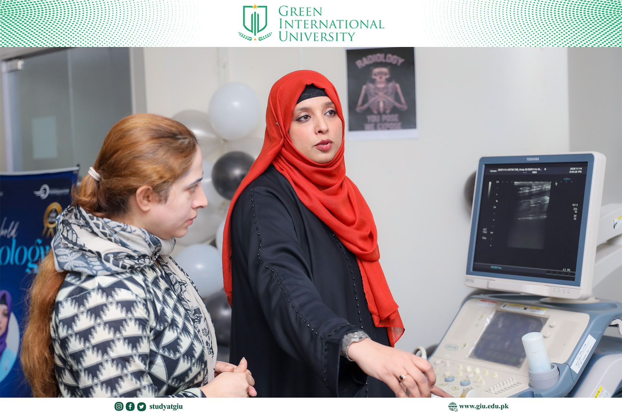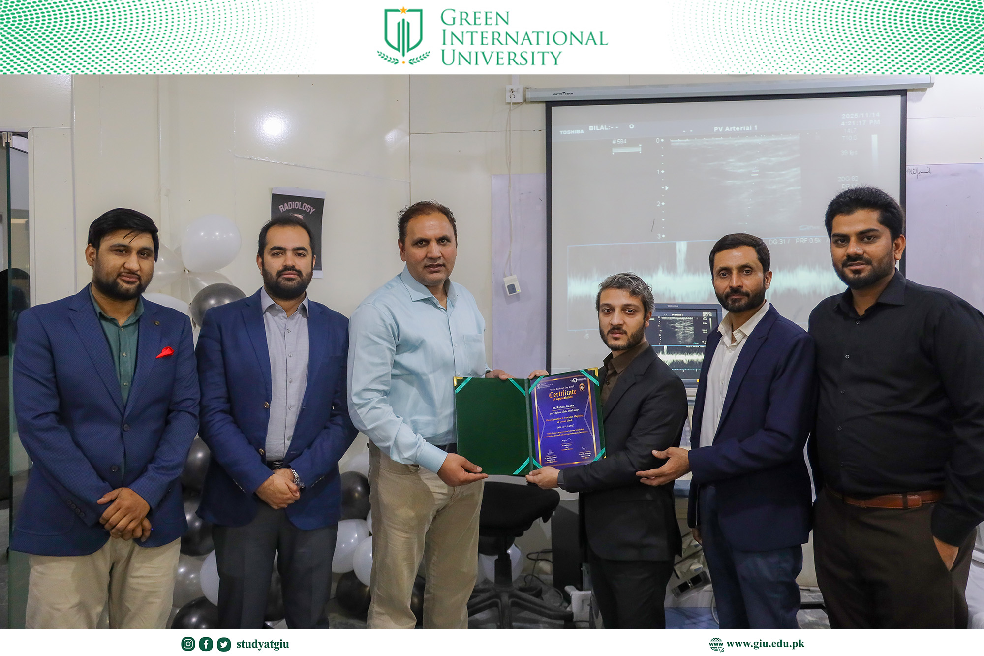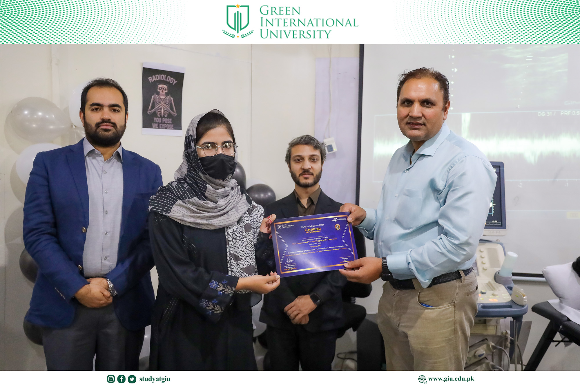 As part of the World Radiology Day celebrations, the Department of Radiology at Green International University organized a highly focused and skill-enhancing full-day series of specialized ultrasound workshops. Designed to elevate students’ diagnostic competence and hands-on clinical proficiency, the event brought together expert trainers and enthusiastic participants for an immersive learning experience.
