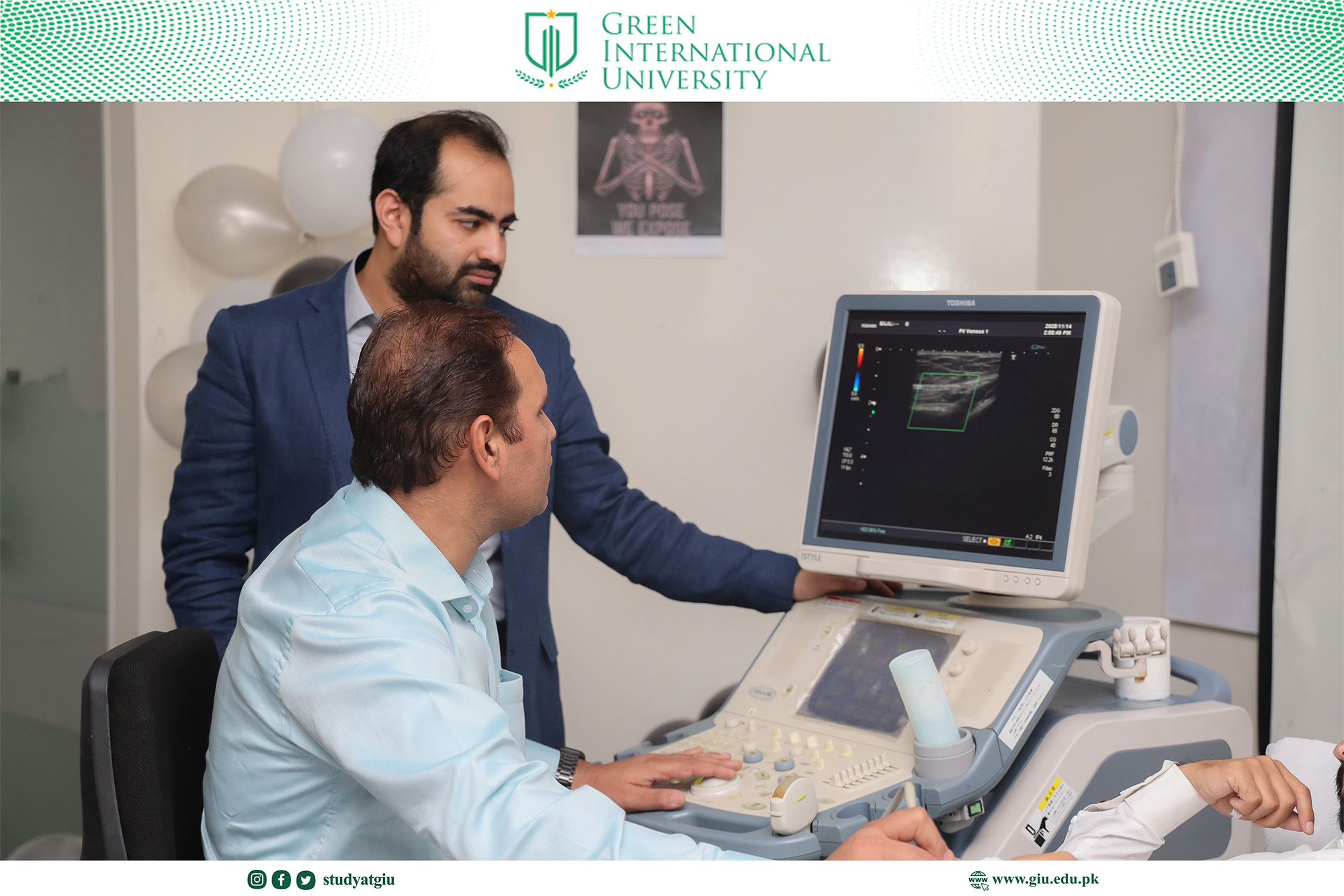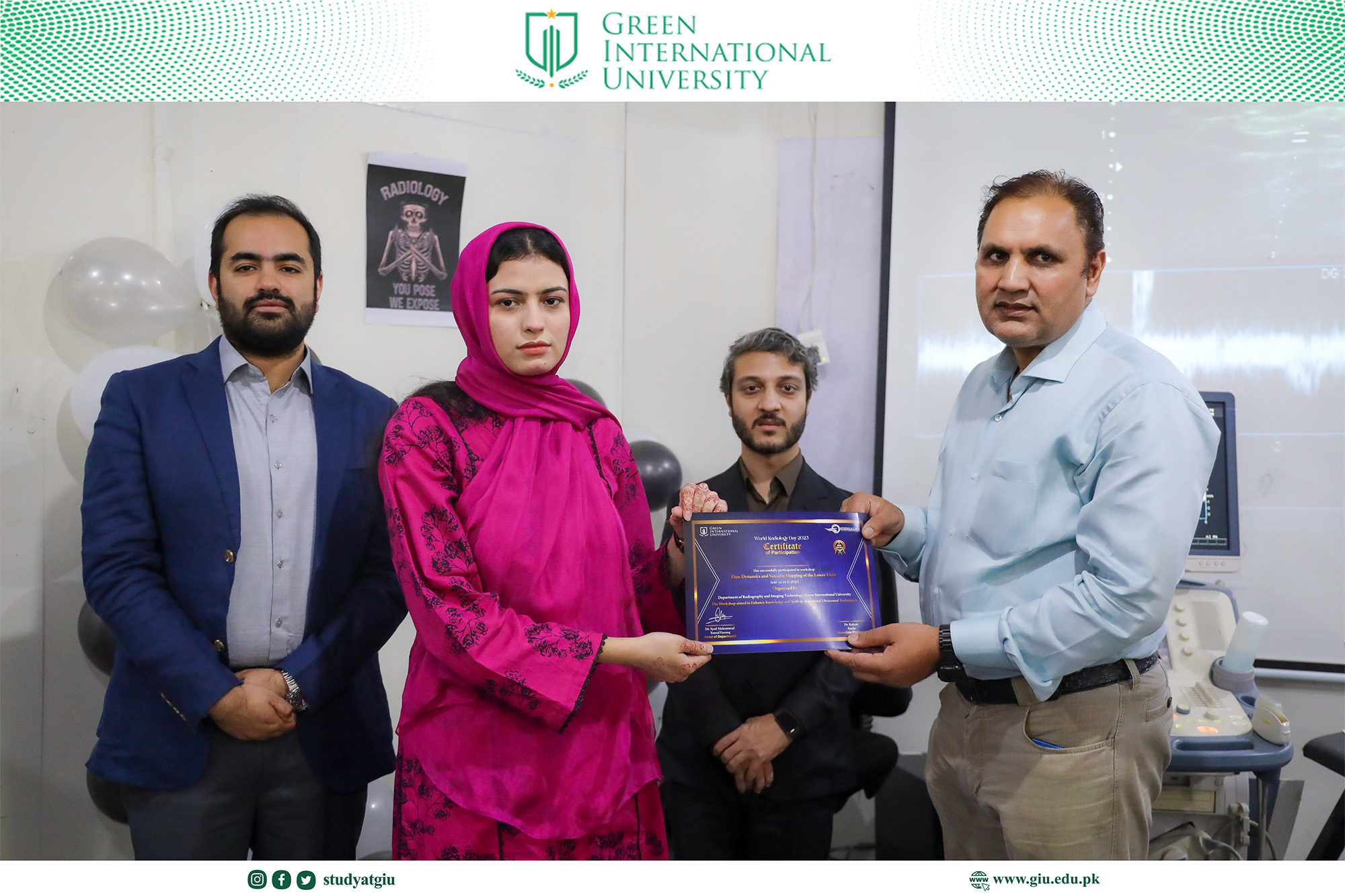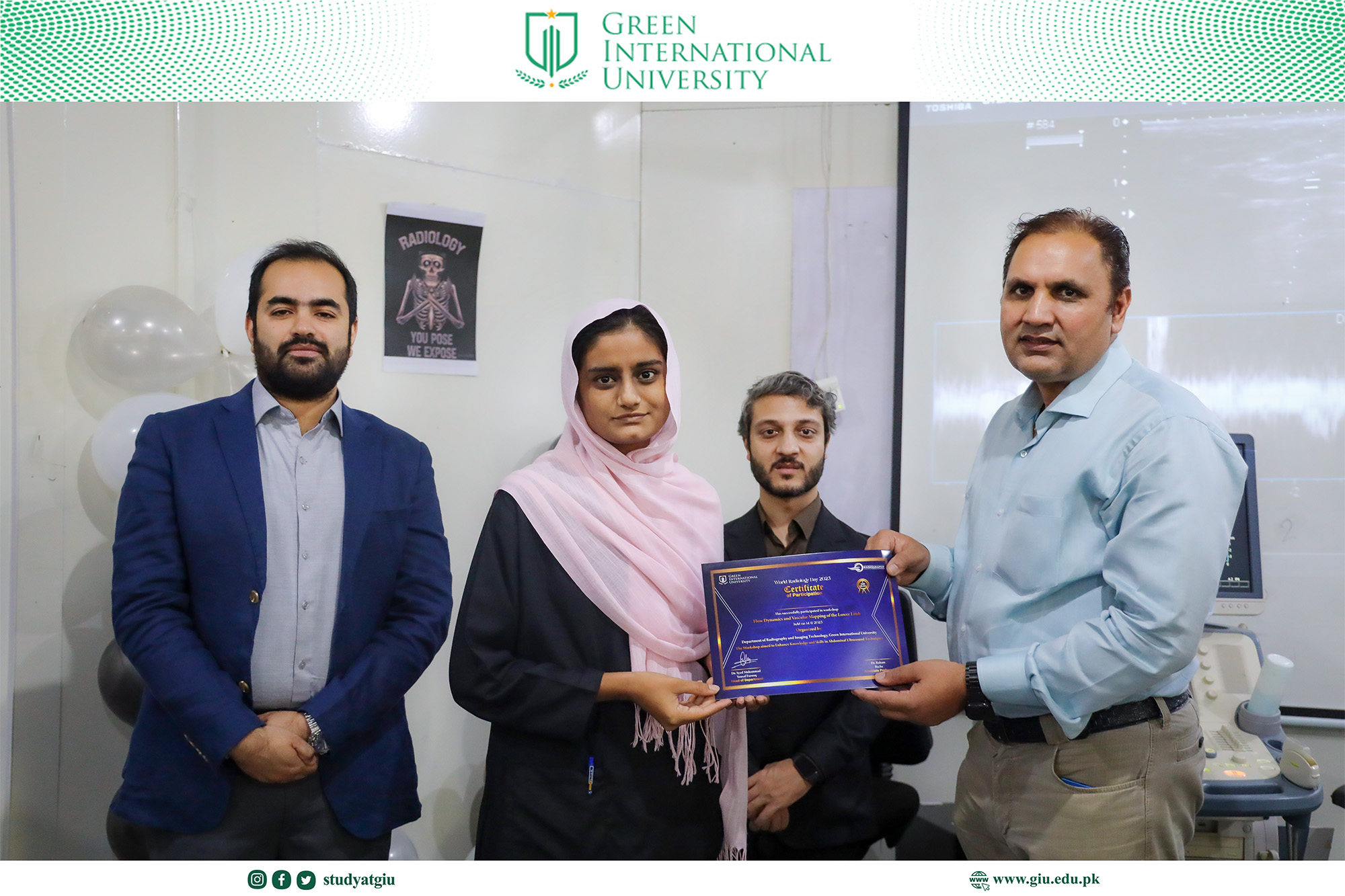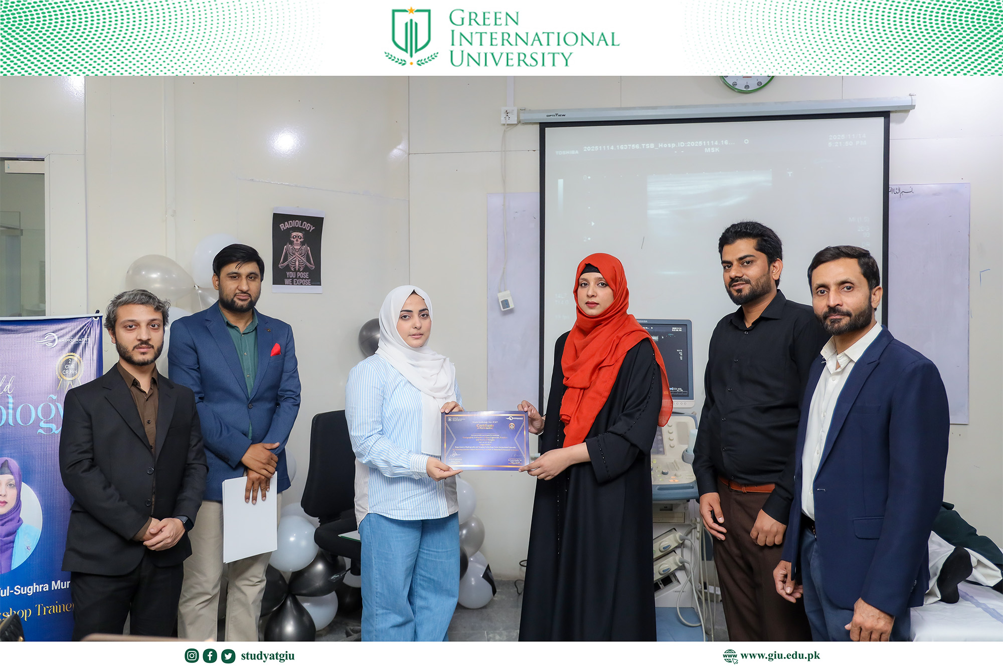 As part of the World Radiology Day celebrations, the Department of Radiology at Green International University organized a highly focused and skill-enhancing full-day series of specialized ultrasound workshops. Designed to elevate students’ diagnostic competence and hands-on clinical proficiency, the event brought together expert trainers and enthusiastic participants for an immersive learning experience.