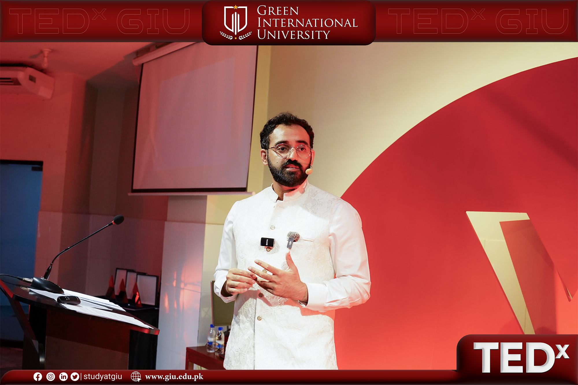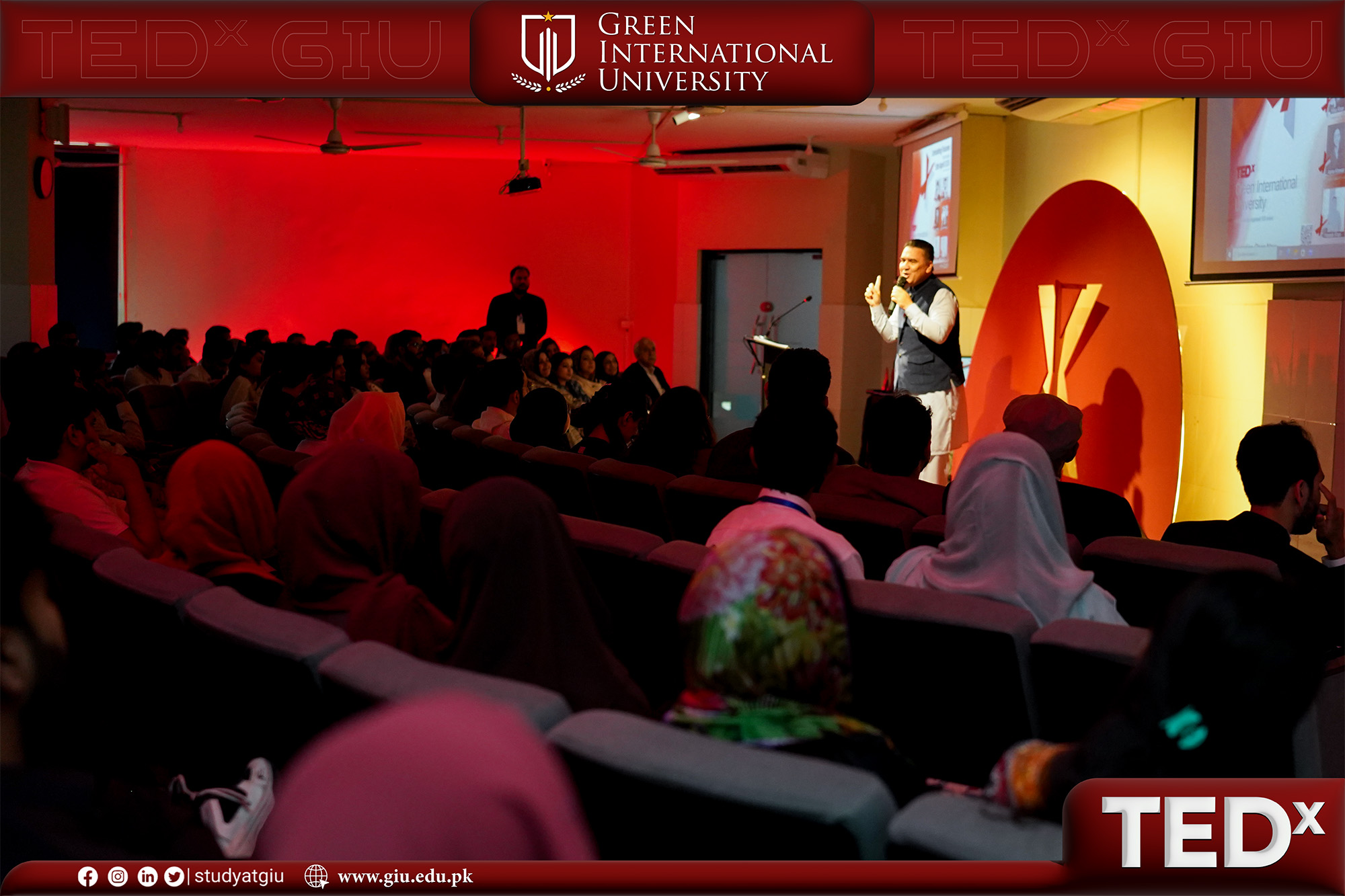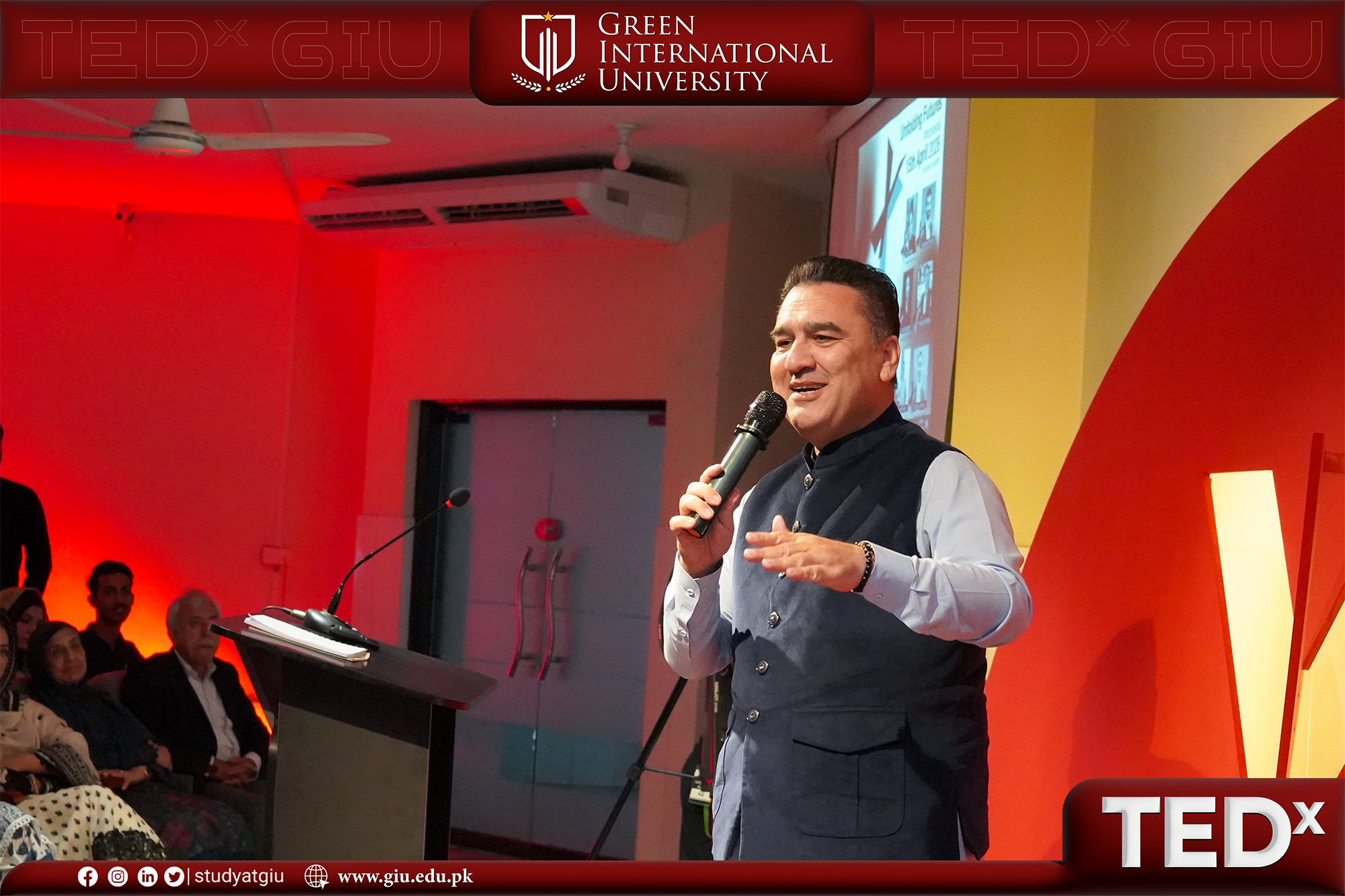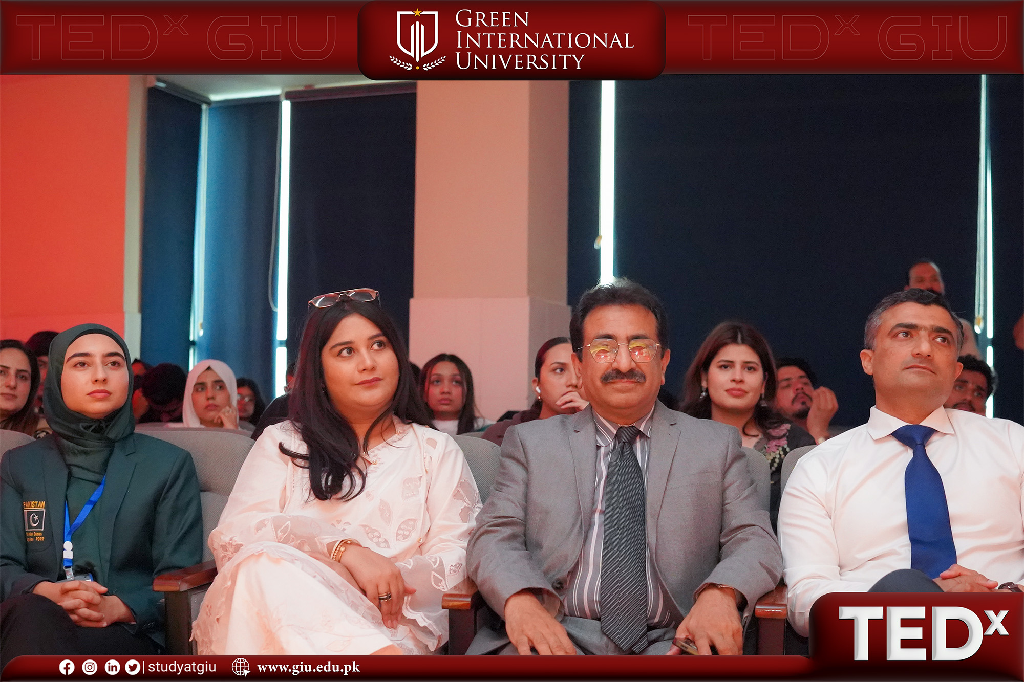 Green International University proudly hosted TEDx GIU, a dynamic and inspiring platform where ideas met vision under the powerful theme “Unfolding the Future.” The event brought together an exceptional lineup of thought leaders, innovators, and change-makers who shared powerful stories, insights, and lived experiences, each contributing to a broader narrative of purpose, progress, and possibility.