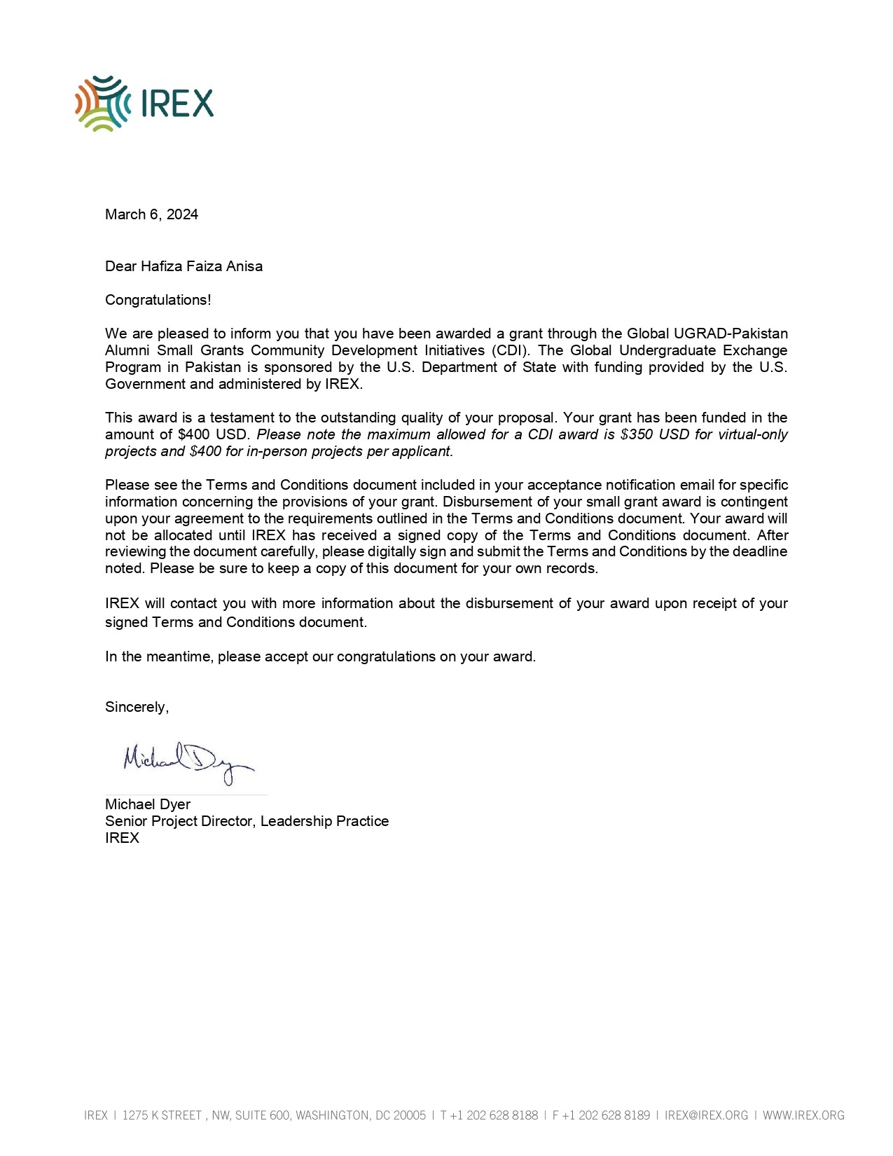 The Global Undergraduate Exchange Program in Pakistan sponsored by the U.S. Department of State with funding provided by the U.S. Government and administered by IREX.